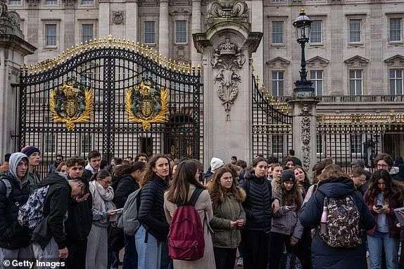 (昨天在白金汉宫前围聚的人群)