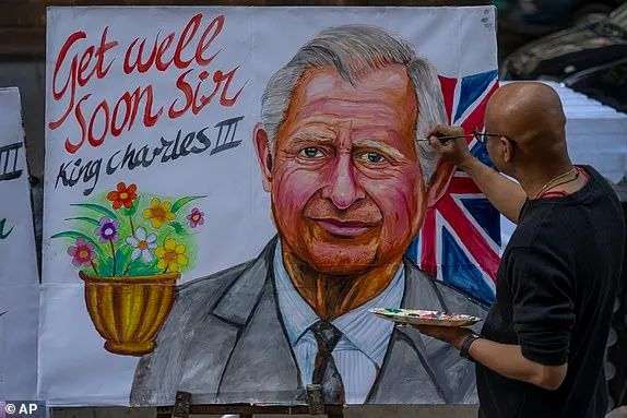 (印度街头艺术家为查尔斯创作画作祝愿他早日康复)