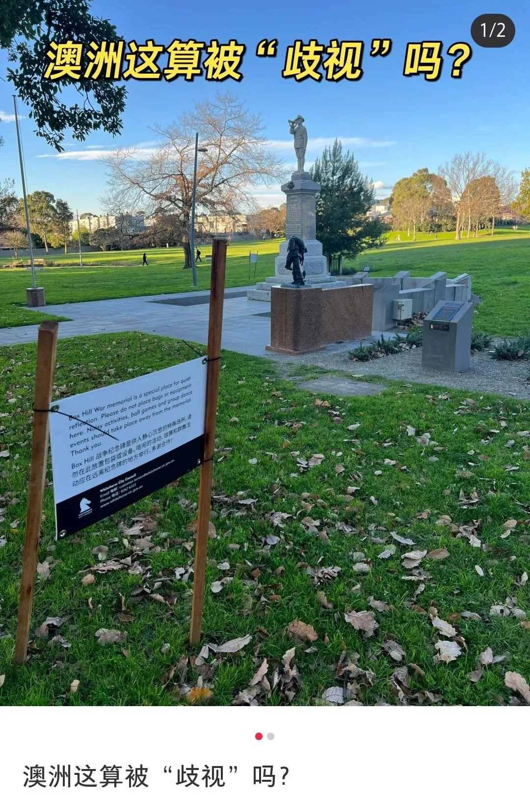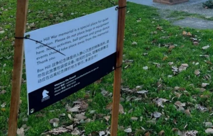 最近Box Hill公园里多了一块牌子,不少华人看到之后皱起了眉头,开始思考一个问题…