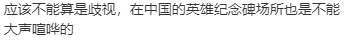 “应该不能算是歧视,在中国的英雄纪念碑场所也是不能大声喧哗的。”