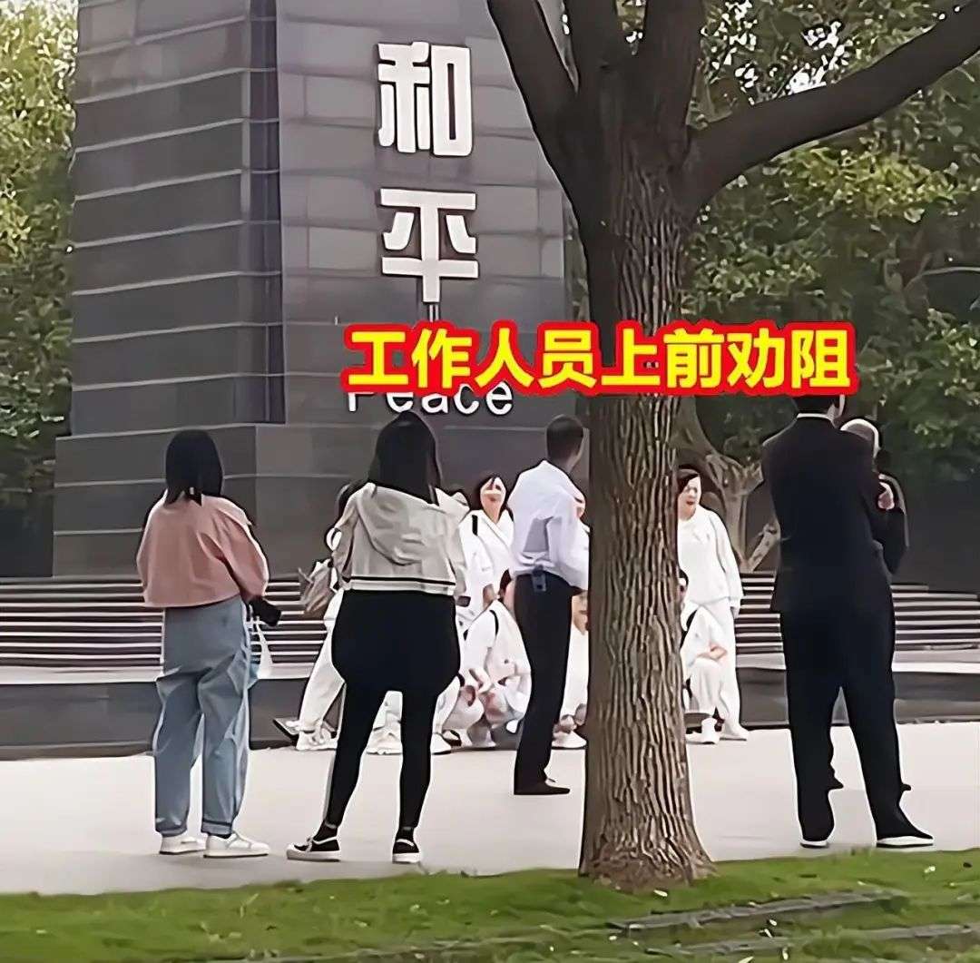 当时在网络上有南京的网友发布视频称,几名身穿制服的大妈在日寇侵华南京大屠杀遇难同胞纪念馆前拍照,并大笑现场。