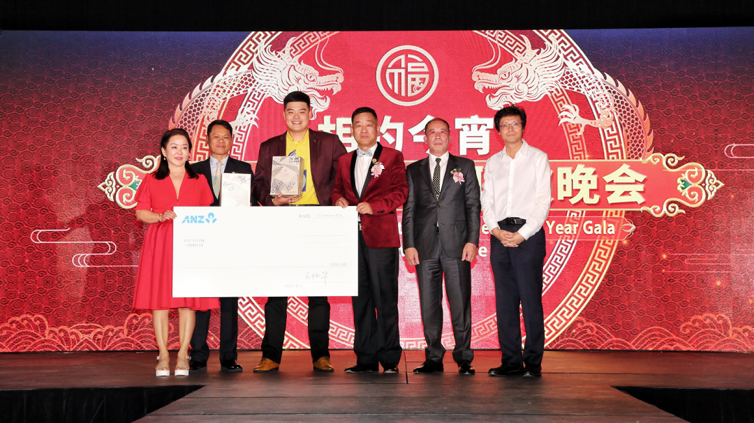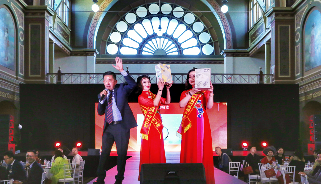 最终,拍品以2680澳元成交,所得款项于当场捐赠给爱梦慈善基金会。组委会代表维州华人社团联合会主席陈运国先生、澳洲文化与经济促进会会长郑志武先生、天鹅集团董事长李卫先生,以及中国总商会墨尔本分会会长潘元生先生一同见证善款捐赠,爱梦慈善基金会董事Alice Gu女士上台接受善款。