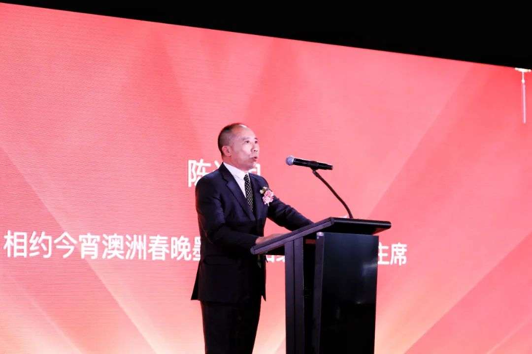 维州华联会主席陈运国在致辞中表示,非常荣幸能够代表维州华人社团联合会及澳洲春晚墨尔站联席主办方、在这里与大家共同庆祝这个属于我们的传统佳节——春节。