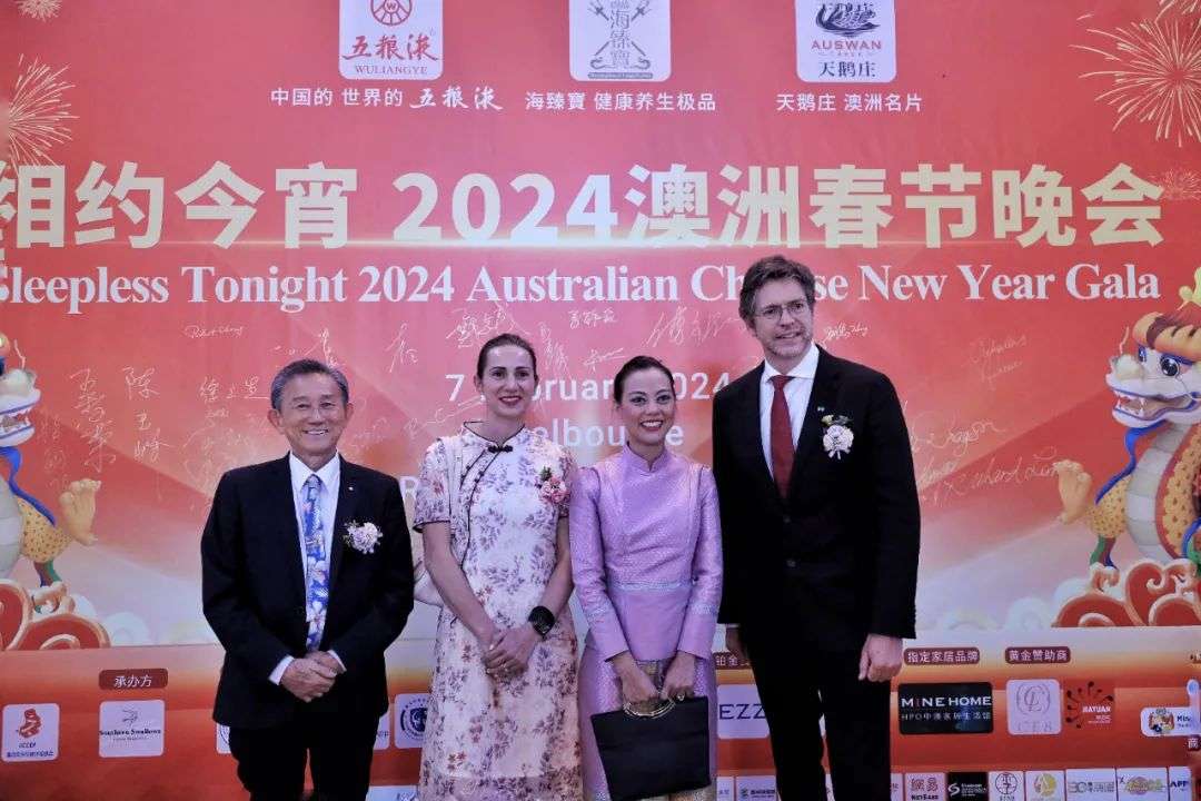 来自中国、英国、日本、法国、马来西亚、泰国、萨尔瓦多和秘鲁等国的多国外交使节,以及多位澳洲联邦或州政府高级官员都来到了《相约今宵-2024澳洲春晚》墨尔本站现场。