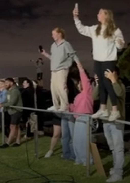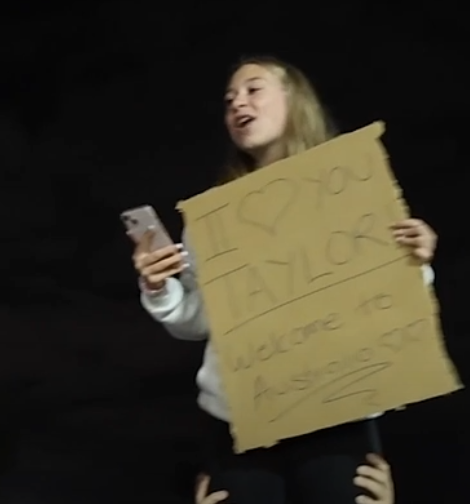 而在深夜,大批粉丝聚集在机场附近,就是为了拍摄泰勒·斯威夫特的飞机抵达时的样子。手机的摄像头不太够用,远处有个小哥甚至长焦镜头都用上了: