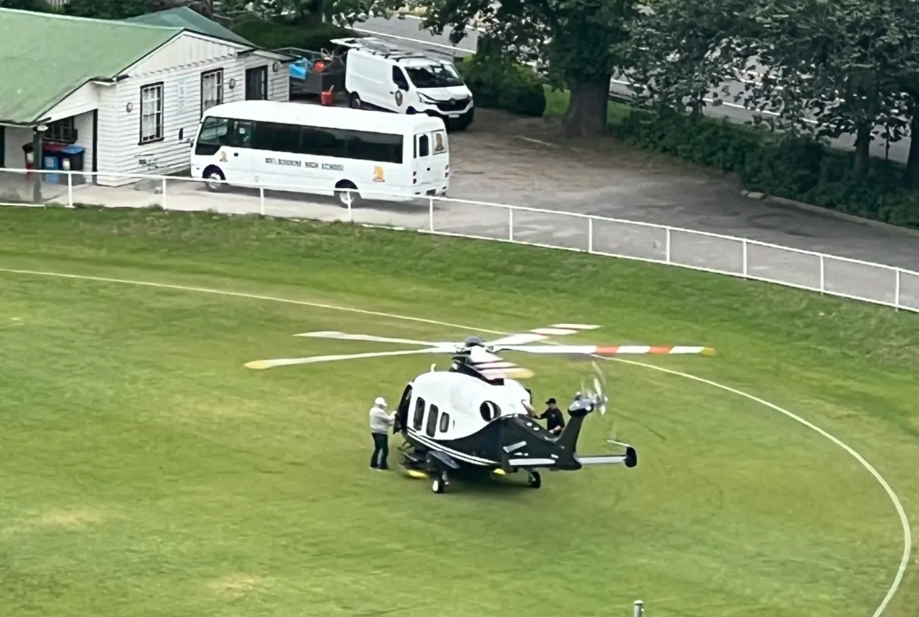 Melbourne High就同意这位校友在校园运动场上起降直升机了,这一同意就同意了30年,