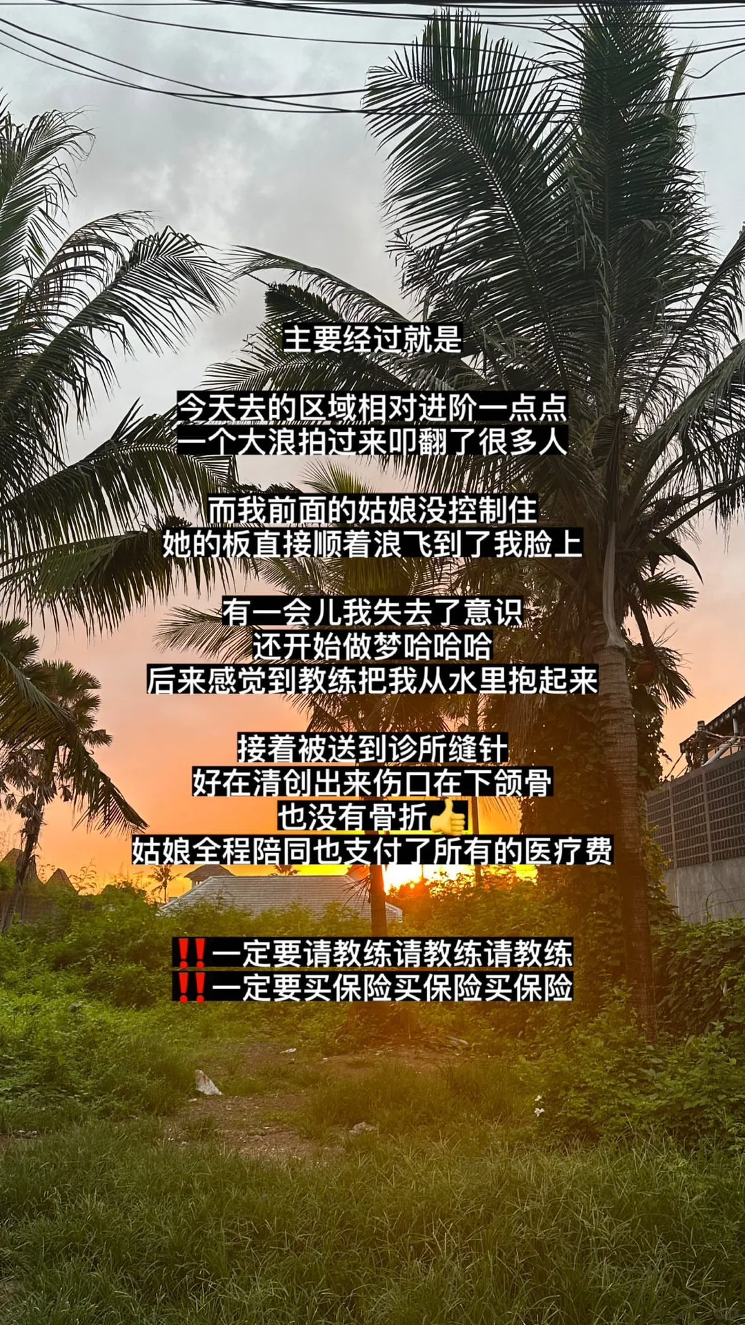 还有网友分享了自己在巴厘岛冲浪被撞进了ICU的经历,向网友们传递了一定要: