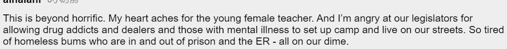 “太恐怖了...为年轻的女教师的遭遇感到痛心,也对我们的立法者感到愤怒。