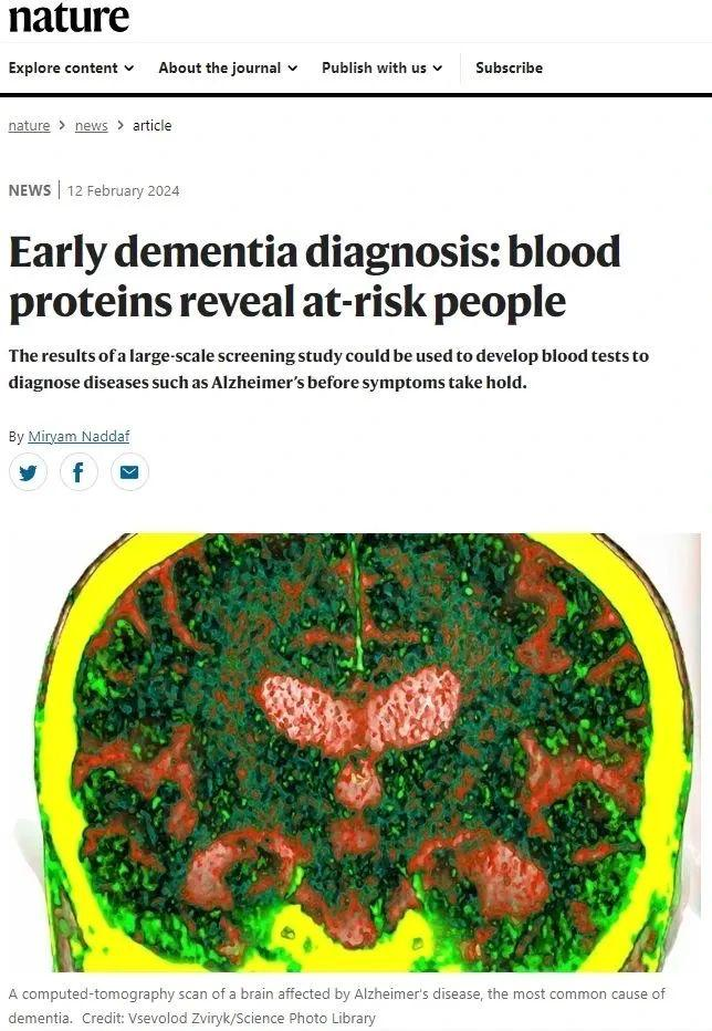《自然》主刊评价这项研究“标志着向能在早期无症状阶段检测阿尔茨海默病及其他类型痴呆的血液检测方法迈进了一步。”