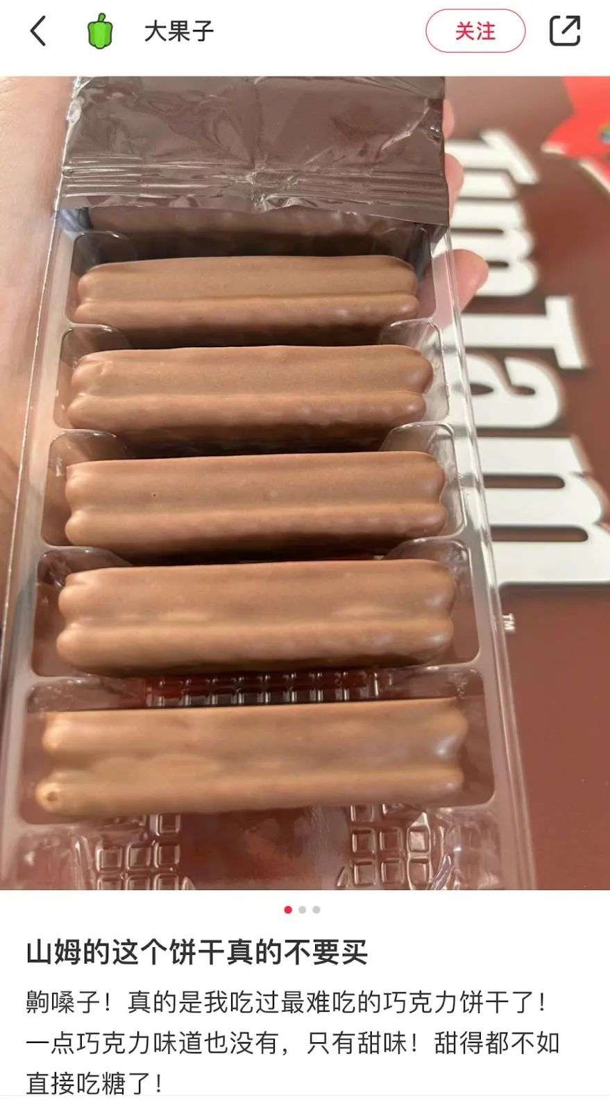 小红书博主@大果子说,“山姆的这个饼干真的不要买!”