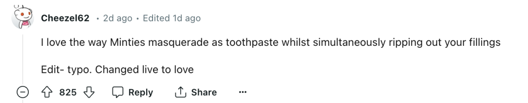 网友们展开了激烈的讨论,网友@Cheezel62评论道,“我喜欢这种薄荷糖像牙膏一样的刺激,有时又黏的能把牙粘下来...”