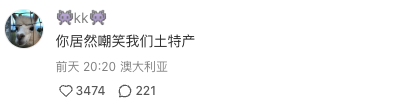 果然,热评第一就是我们ip澳洲的土澳网友,质问,“你居然嘲笑我们土特产”。