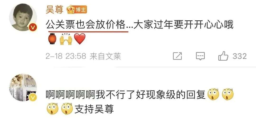 因为吴尊的微博,有网友更加确信门票是公关票,自己掏钱买的。对此吴尊礼貌回复表示“公关票也会放价格…大家过年要开开心心哦”。