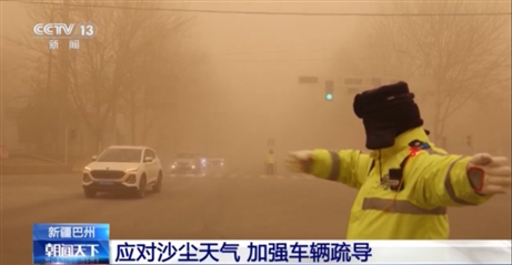 新疆巴州应对沙尘天气 加强车辆疏导