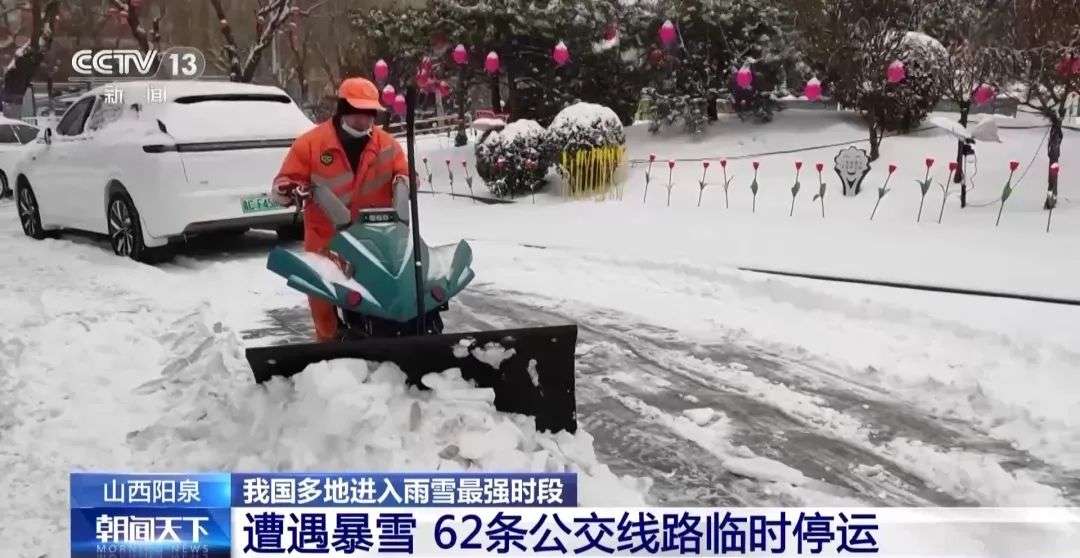 山西阳泉昨天(20日)遭遇暴雪,62条公交线路停运。