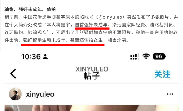 收藏大瓜!中国花滑运动员突然炸裂自曝:强奸未成年、连环约炮、贿赂!最新回应:我号被盗了......