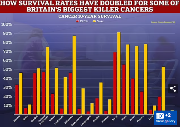 英国癌症研究中心表示,英国所有公共资助的癌症研究中只有38%来自政府,美国政府癌症研究人均资助是英国的五倍。