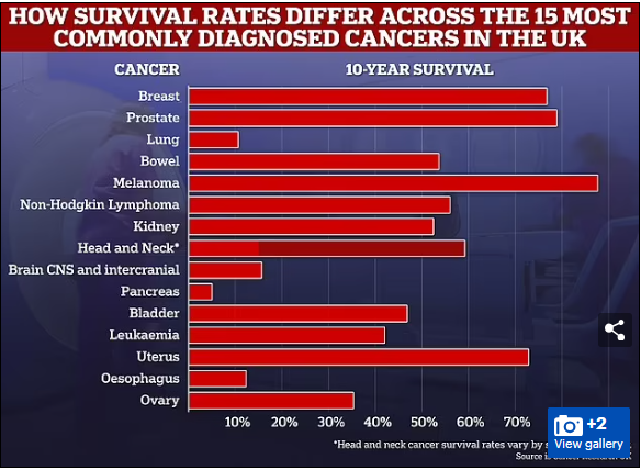 英国癌症研究中心估计,如果英国癌症死亡率降低15%,未来20年可避免11万人死亡。