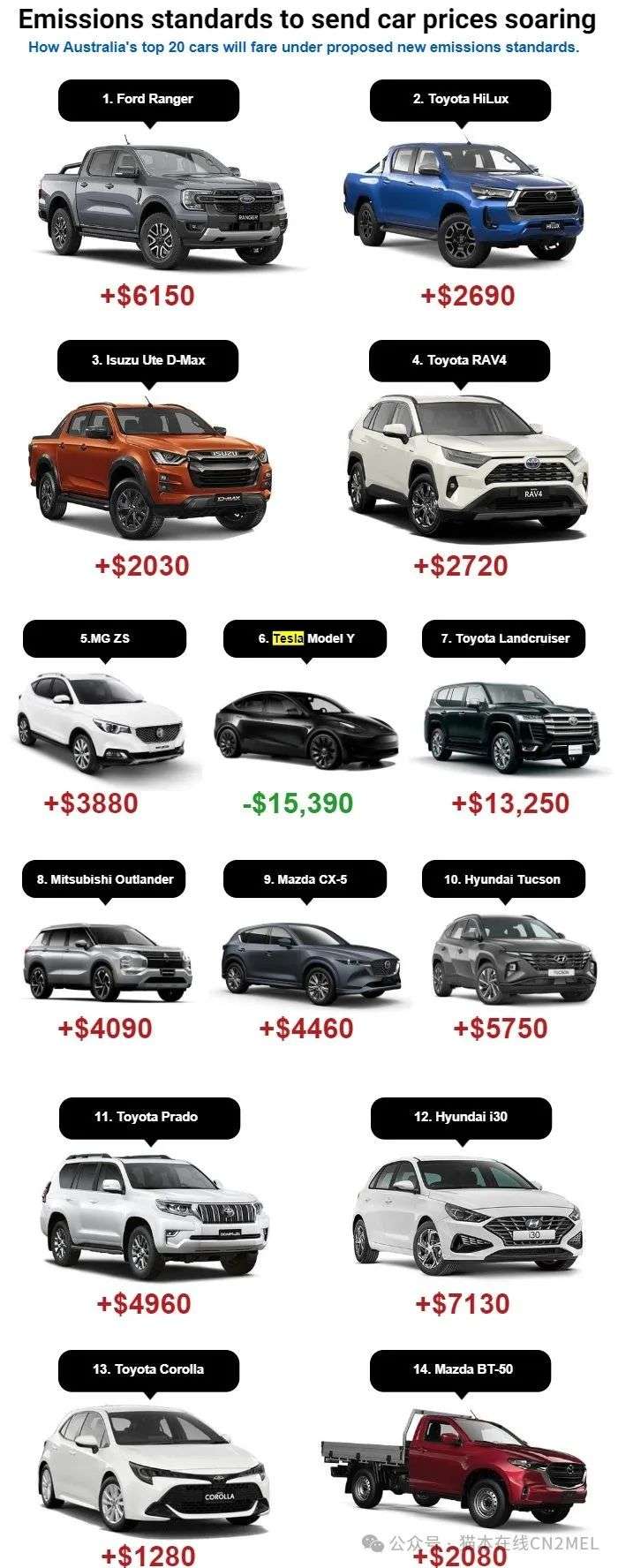 收藏澳洲最畅销车型将“加价”1.3万澳币!高排放量汽车受影响最大!