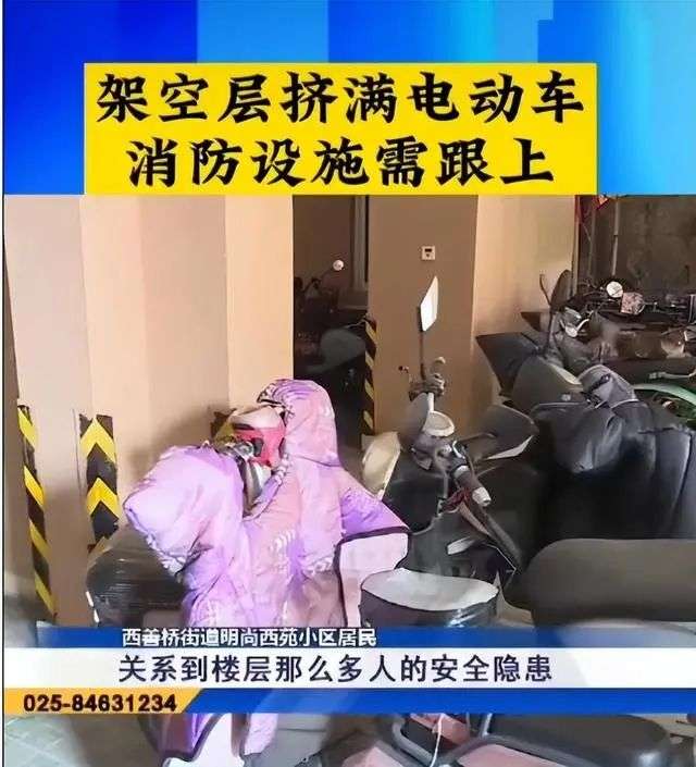 据南京广电《法治现场》栏目2022年4月14日报道,该小区架空层挤满电动车,呼吁“消防设置需跟上”。