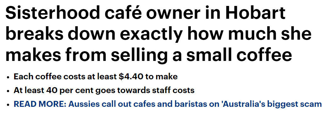 收藏一杯咖啡只挣40c !澳洲华人老板吐槽:自己做生意还不如打工!网友:制造焦虑!