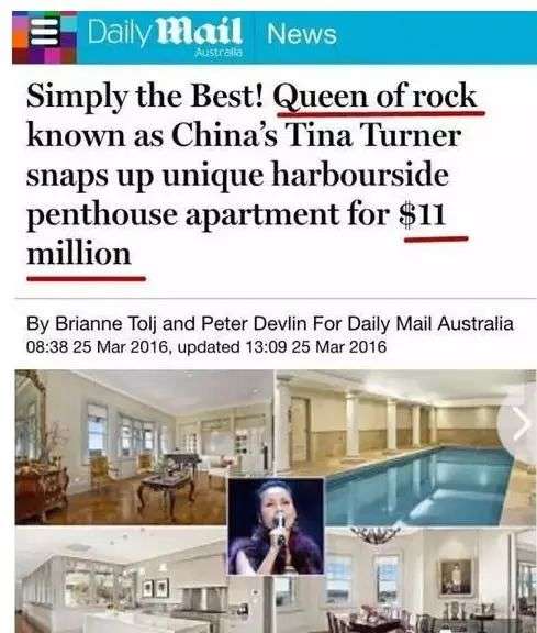 据报道,近日,中国女歌手田震正在出售她在悉尼拥有七年的房产,在她位于 Point Piper 的超大公寓上挂上“出售”的牌子,并附有价值 1800 万澳元的价格。