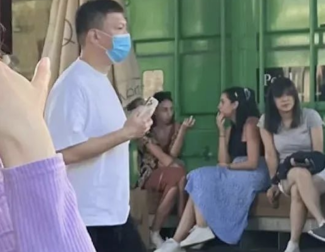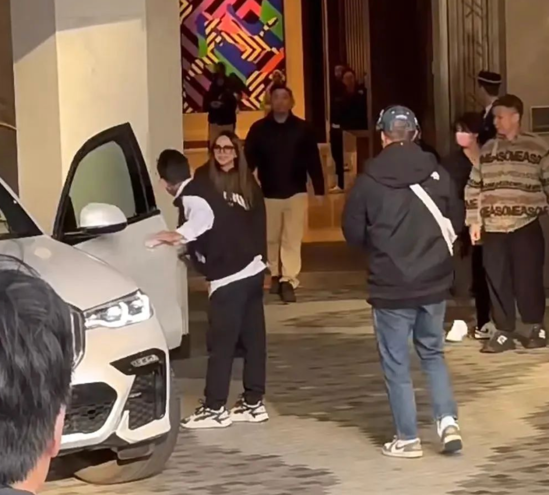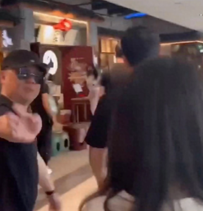 前后还有两名身材魁梧的男性工作人员,疑似保镖。