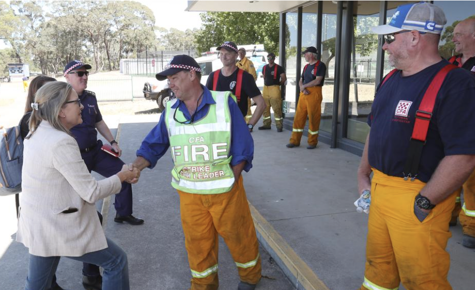 来自维州东部Tyers消防队的志愿者,周五一大早就出发,驱车约375公里来到州西部,协助当地CFA队伍抗击失控的野火。