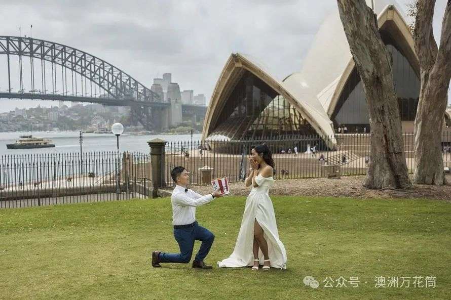 来自悉尼西南部Cabramatta的Brian Tran单膝跪地,戴着洋葱戒指,向他的妻子Thanh Huynh求婚。