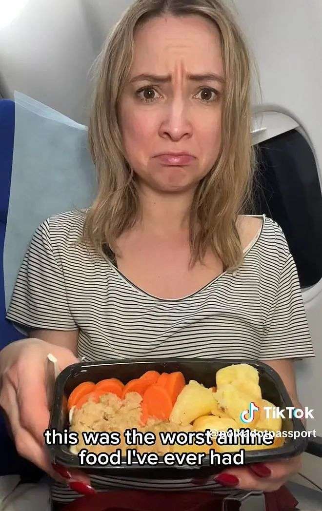 Nicola表示自己以前也吃过难吃的飞机餐,但这一次是最糟糕的,终于能明白为什么机票那么便宜了...