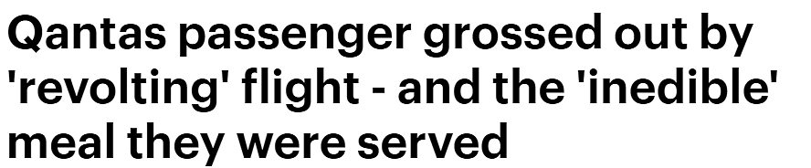 《每日邮报》报道称,一位澳航乘客抱怨说,自己两次坐飞机,座位都挨着漏水的空调出风口,食物还“难以下咽”。