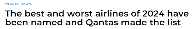 值得庆幸的是,2024年澳航的情况有所好转,被评为了全球最佳长途航空公司的第五名!