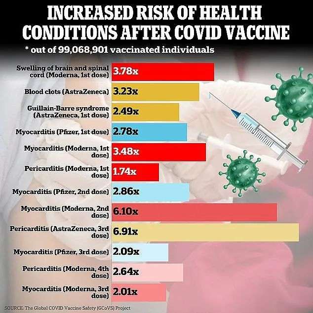 该联盟表示,另外几种疾病也与新冠疫苗脱不开干系,比如,一种脑肿胀疾病就与莫德纳疫苗有关。