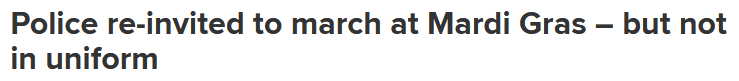 由于几天后就是悉尼一年一度的Mardi Gras大游行,这也导致了警方的信任危机。