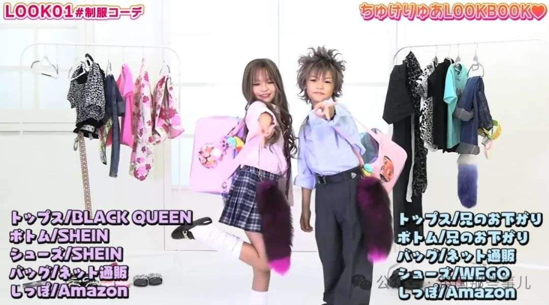 他们作为小学生情侣,一起为媒体拍摄穿搭秀。