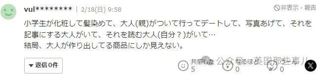 “小学生化妆染发,父母跟着一起去约会拍照片。然后有大人发布相关报道,有大人阅读报道。到头来,他们只是大人推出的商品。”