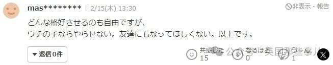 “虽然说喜欢怎样的打扮是个人自由,但我不会让自己的孩子这么做,也不想跟她交朋友。就这样。”