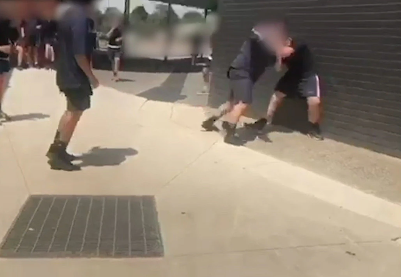 第一起严重事件发生在去年十月,一名学生将受害男孩的头紧夹在腋下,还出拳狠狠打他,把受害男孩打倒在地。