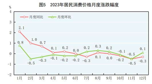 核心CPI基本平稳。2023年我国居民消费价格(CPI)比上年上涨0.2%,保持了温和上涨态势,低于美国4.1%、欧元区5.4%的涨幅,与主要发达经济体饱受高通胀困扰形成鲜明对比。近几个月,CPI同比有所下降,主要是由于2022年俄乌冲突等一些非经济、非常规因素导致食品和能源价格大幅上涨,2023年转为下降,对整体CPI影响较大。而扣除食品和能源的核心CPI保持总体稳定,比上年上涨0.7%,其中服务价格上涨1.0%。近期,在春节假日带动下,居民消费需求增加,旅游出行、文体娱乐等服务消费较为活跃,有望带动居民消费价格逐步企稳回升。