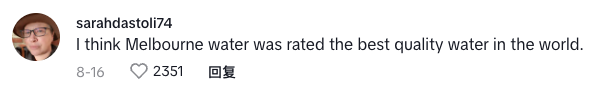 网友表示,墨尔本拥有澳洲最好的水,显然是世界上最好的!