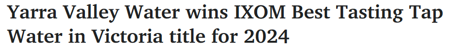Yarra Valley Water 击败了决赛入围者 Central Highlands Water、Barwon Water 和 North East Water,荣获了备受追捧的 IXOM 2024 年“最佳口感自来水”称号。