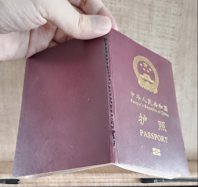 负责检查的民警发现,这本护照中缝装订处竟然有肉眼可见的缝补痕迹!
