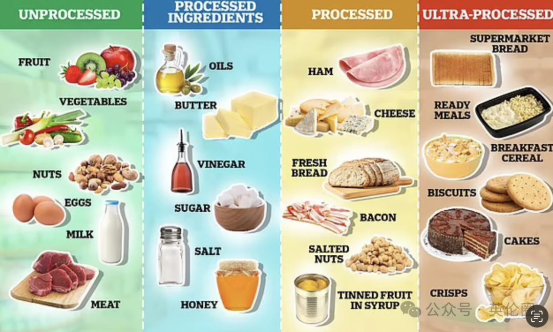 超加工食品(ULTRA-PROCESSED FOODS)是指添加脂肪、糖和盐含量高,蛋白质和纤维含量低,并含有人工色素、甜味剂和防腐剂的食物。