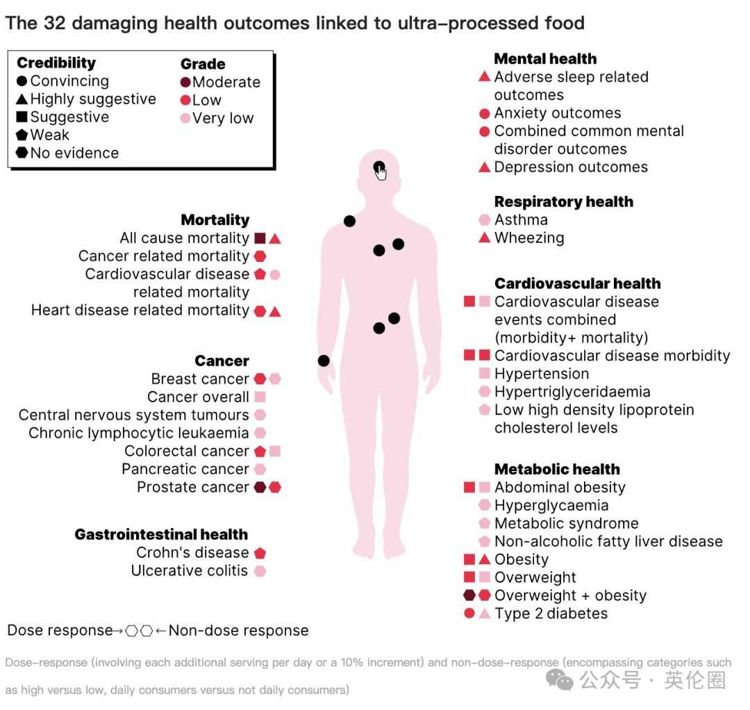 《每日邮报》称,超加工食品会对身体造成32种以上的健康损害,包括癌症、2型糖尿病和精神健康障碍等等。