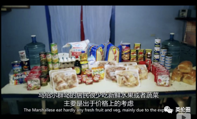 马绍尔群岛的饮食问题还有很多其他方面,其中一个很大的问题是过度食用罐头食品: