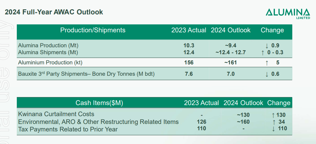 据此方案,收购价格较2024年2月23日Alumina的股价溢价13.1%,以过去12个月的平均汇率计算(澳币兑美元),其溢价率约为19.5%。