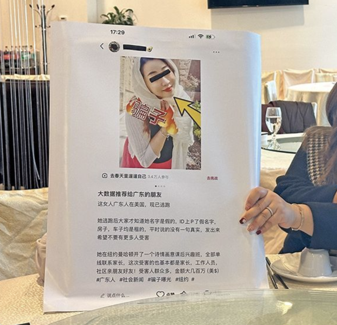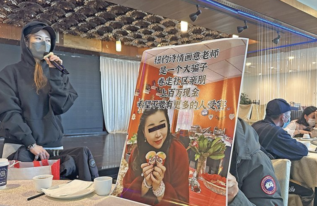 2024年3月1日,20多位华人在纽约法拉盛(Flushing)召开了一场记者招待会,他们均称自己是由华人女子曾X琳设计的庞氏骗局的受害者。