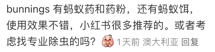 大部分人都和专业人员一样,推荐Bunnings的除蚂蚁药,便宜好用。