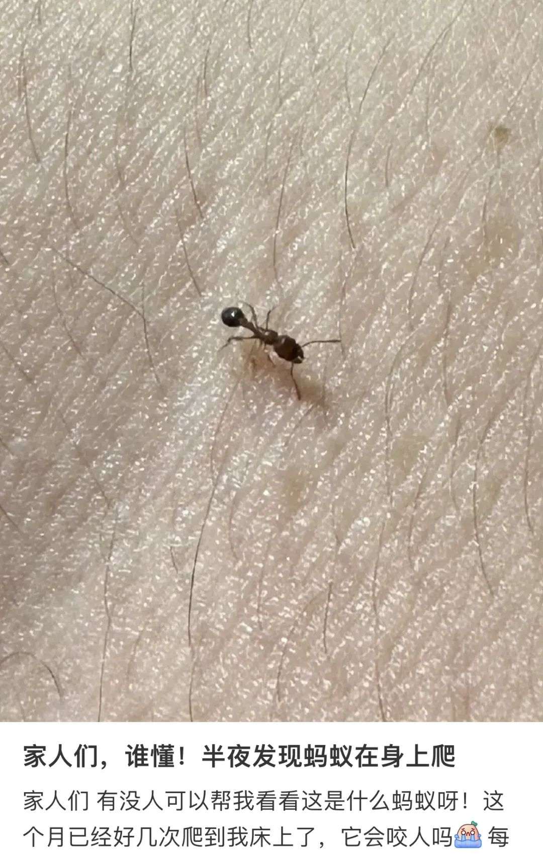半夜遭到蚂蚁攻击的还不止一个,另一名华人也发帖称,半夜发现蚂蚁在身上爬。