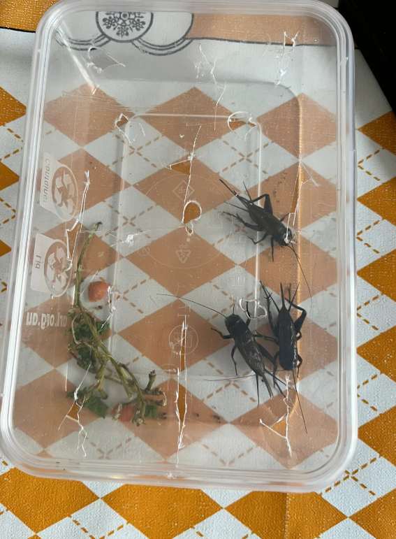 这位网友还晒出了自己抓到的蛐蛐,通体漆黑,有三支尾须,看起来就很不好惹...